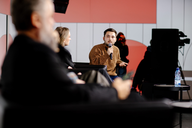 Микита Москалюк виступив у фокусній панелі «Креативний активізм», де міркував про культуру як «резервуар значень» — простір, у якому постійно оновлюються наші уявлення про себе.