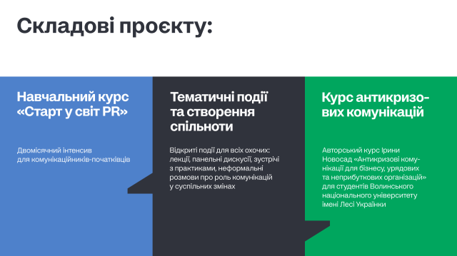 У своїй бульбашці ми чудово усвідомлювали, що таке піар і навіщо він потрібен. Проте під час збору заявок учасників на курс та в роботі з роботодавцями зауважили, що люди часом не розуміють цієї професії та її необхідності. Зазвичай сприйняття було як SMM чи софт-скіли з перемовин. Тому додатковим напрямком ми додали ще розʼяснення, хто такі комунікаційники та піарники в медіа, на івентах серед підприємців та ГО міста.