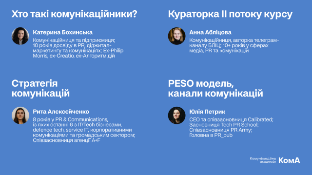 - Спікерки курсу — досвідчені комунікаційниці з різних секторів – допомогли учасникам побачити різні сторони професії.