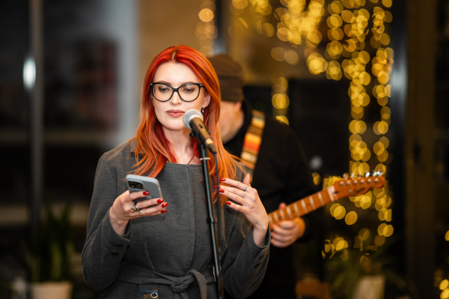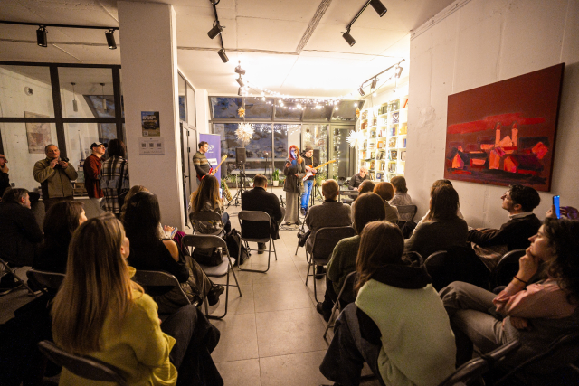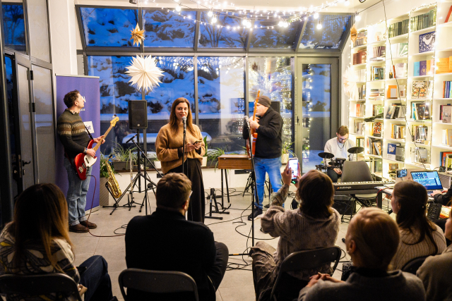 Поетичні читання пройшли під музичний супровід Kyiv Philosophy Band, у якому того вечора грали філософи та публіцисти Володимир Єрмоленко, Микола Сіома, Вадим Менжулін, Вадим Пенюк.