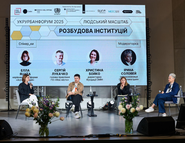 Щоб будувати якісні міста — потрібні потужні інституції, які працюють не на папері, а справді демонструють результат. Фахове спілкування на цю тему об’єднало керівницю «Алгортиму дій» Еллу Яцуту, голову правління ГО «Соціальна платформа “Моє місто”», керівника KCB у FRACTAL Сергія Лукачка та директорку Фундації ЗМІН Христину Бойко. Модерувала стратегиня відновлення громад, дослідниця екосистемного лідерства, співзасновниця платформи соціальних інновацій «Велика Ідея» Ірина Соловей.