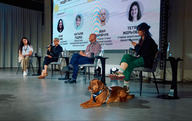 Насичену та моментами гостру дискусію вела старша аналітикиня Cedos Тетяна Жерьобкіна в колі заступника голови з питань цифрового розвитку, цифрових трансформацій і цифровізації Державної служби якості освіти Івана Юрійчука, директорки сумської школи №23 Наталії Педяш та Юлії Білик – експертки з програм надолуження в ГО «Навчай для України».